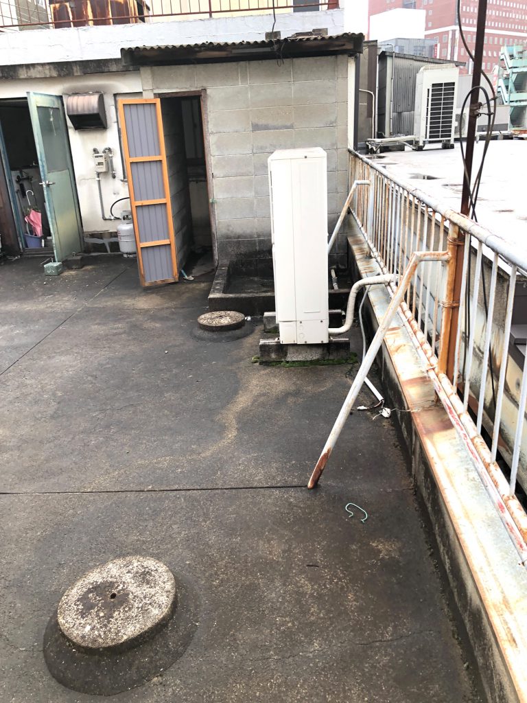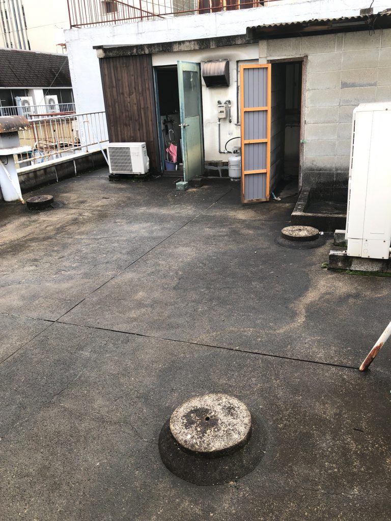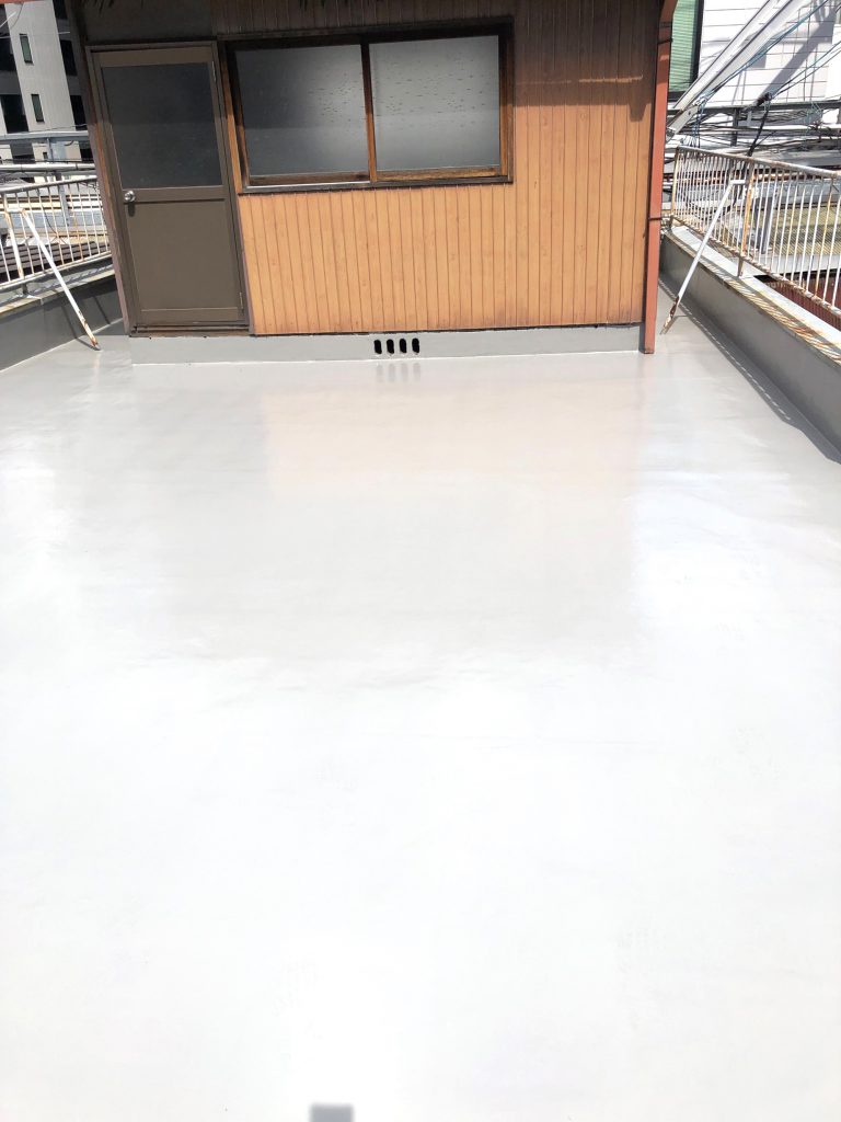 雨漏りのご相談を頂き、確認に伺ったところ屋上の状態に問題がありました。雨の流れ、排水ドレン、下地のクラック等を考え、左官~防水までを行いました。